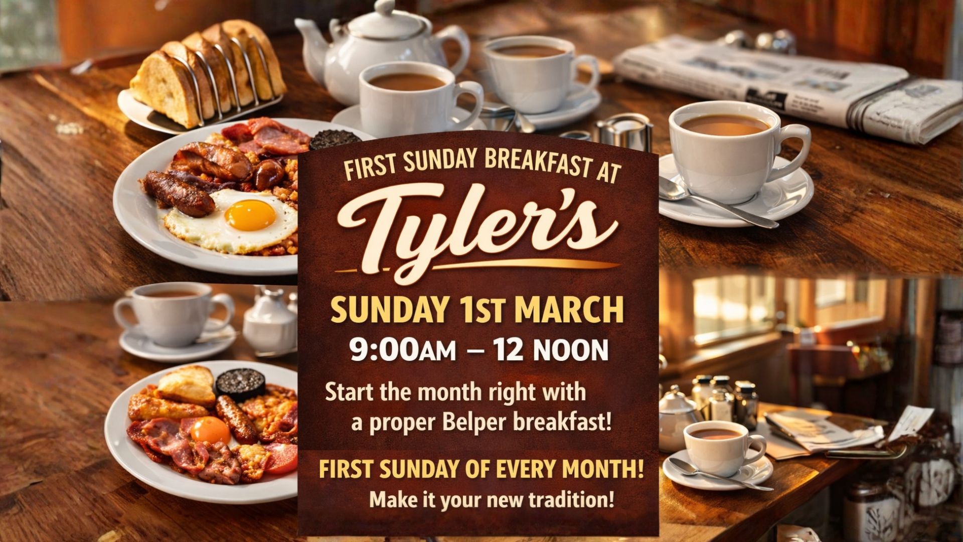 Start the month properly with a cracking Sunday morning breakfast at Tyler’s.
